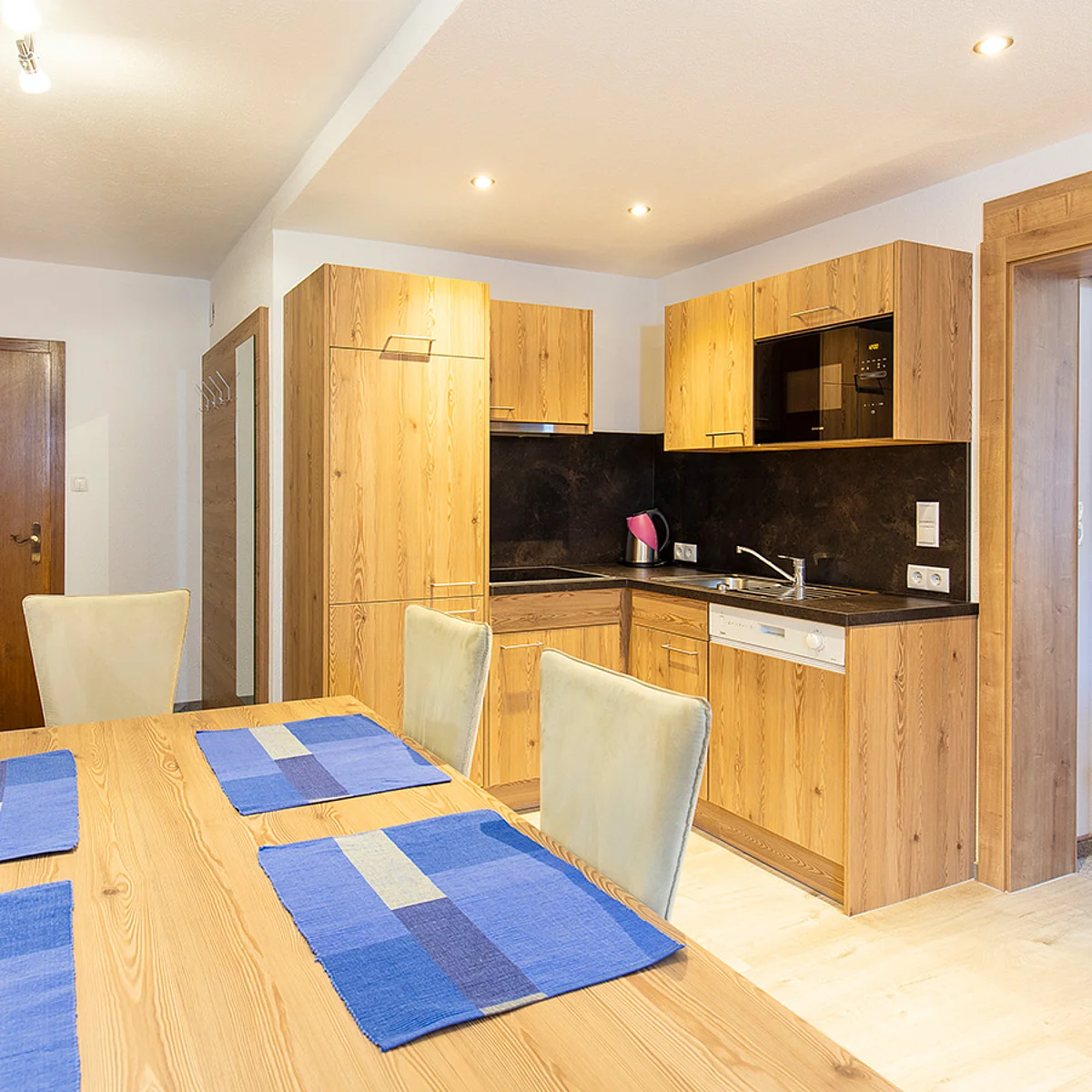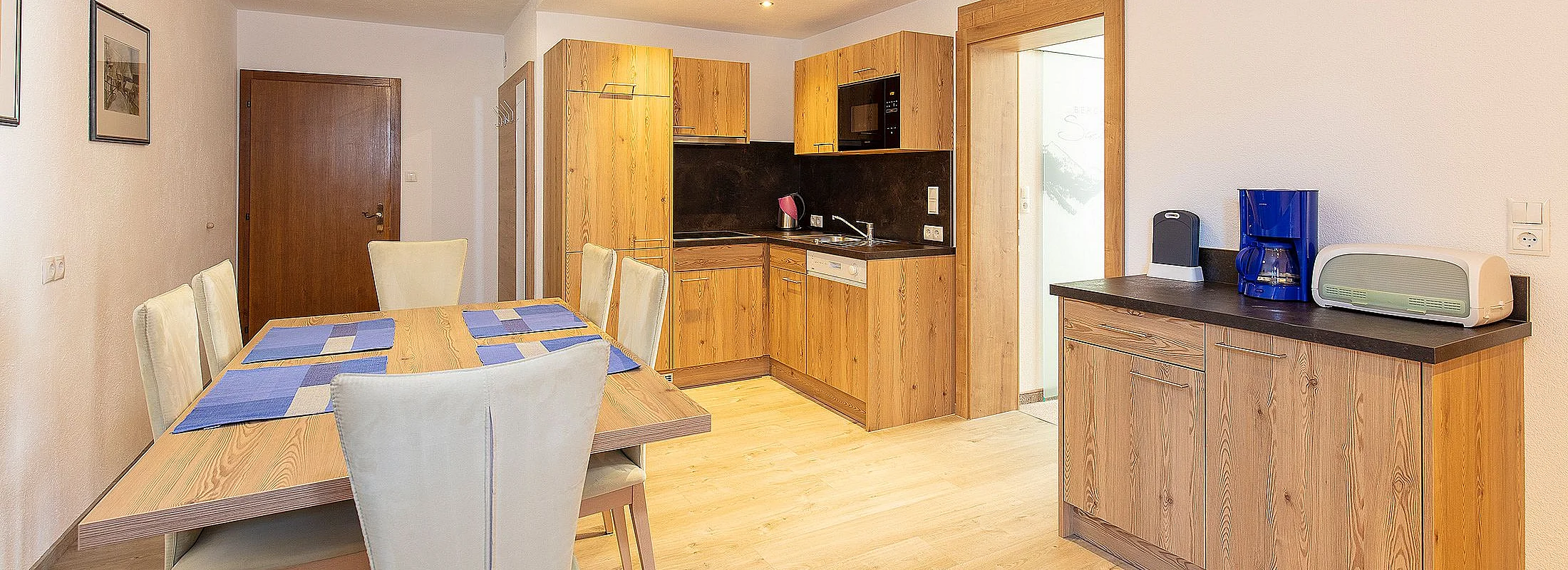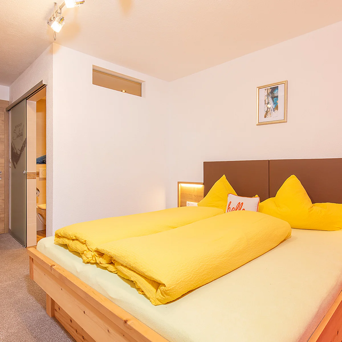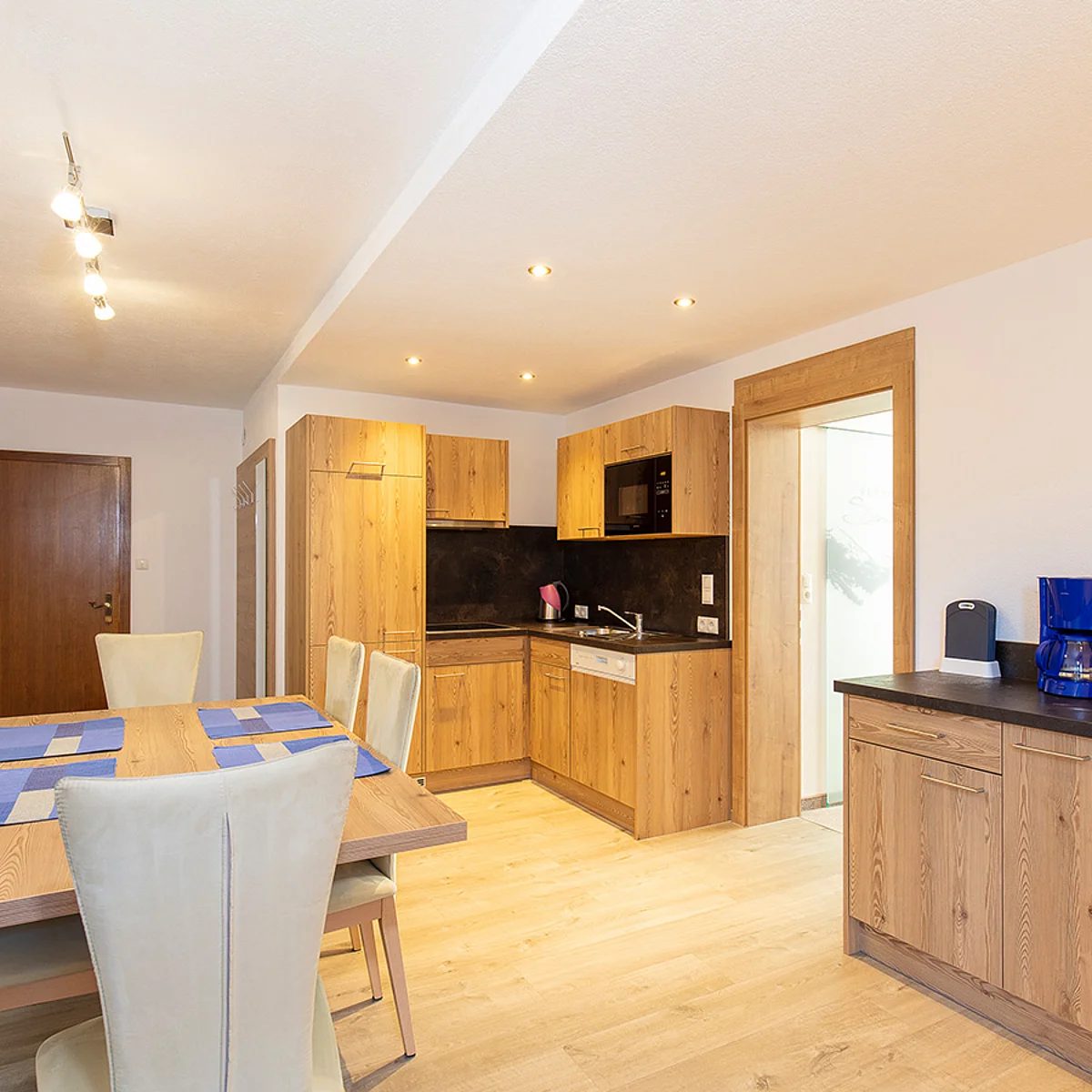 Unsere Ferienwohnung Typ A bietet auf ca. 60 m² Platz für bis zu 5 Personen. Zwei geräumige Doppelzimmer, ein zusätzliches Bett und eine voll ausgestattete Küche sorgen für ein komfortables Wohngefühl. Genießen Sie die Aussicht vom Balkon und starten Sie mit warmen Handtüchern und trockenen Wanderschuhen entspannt in den Tag.