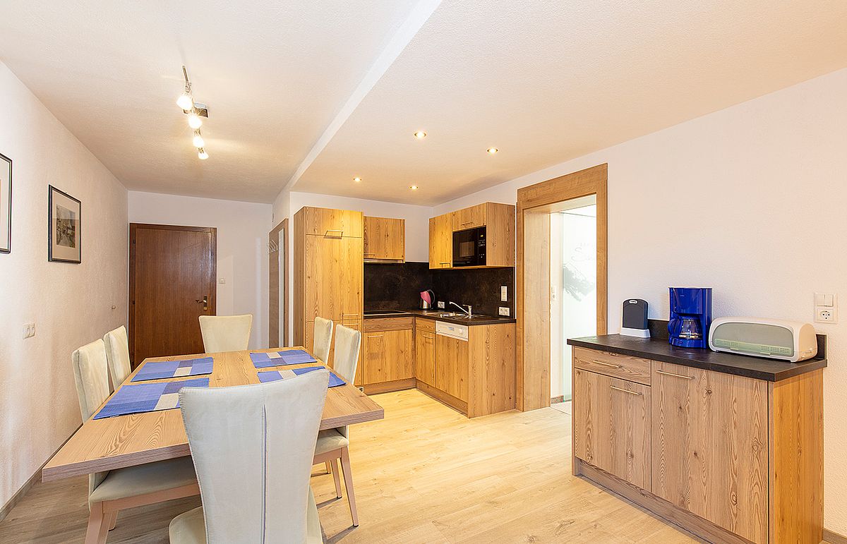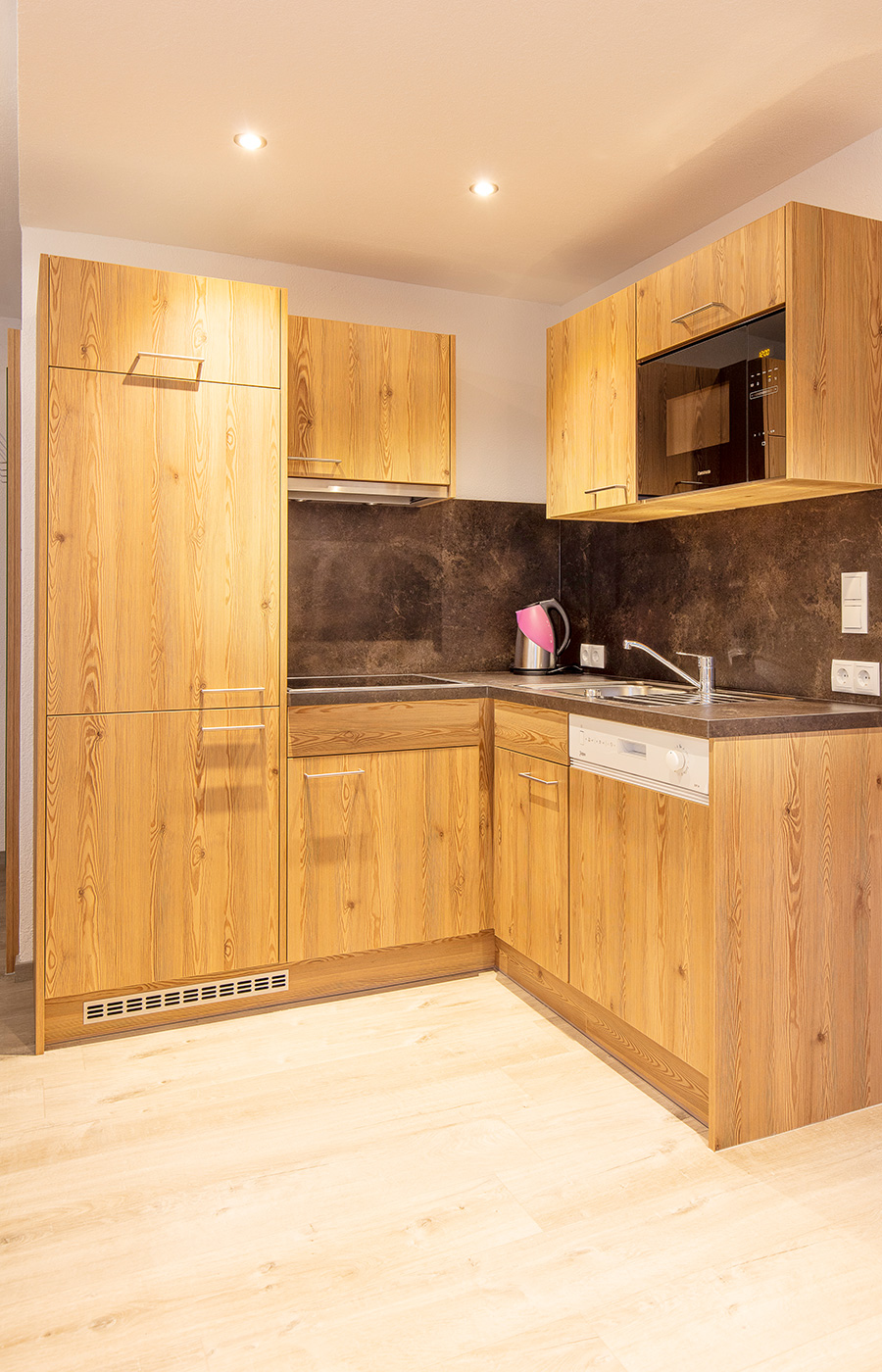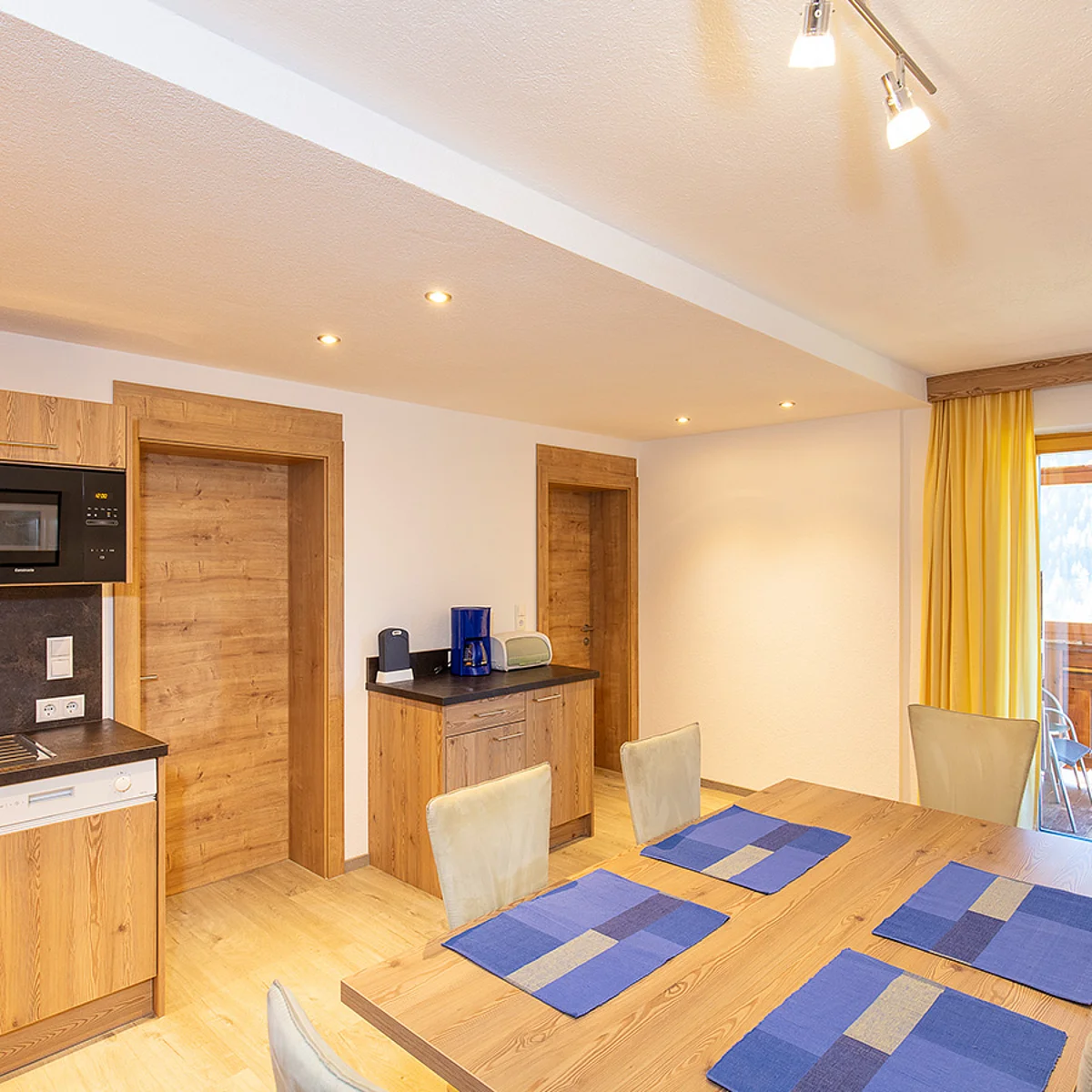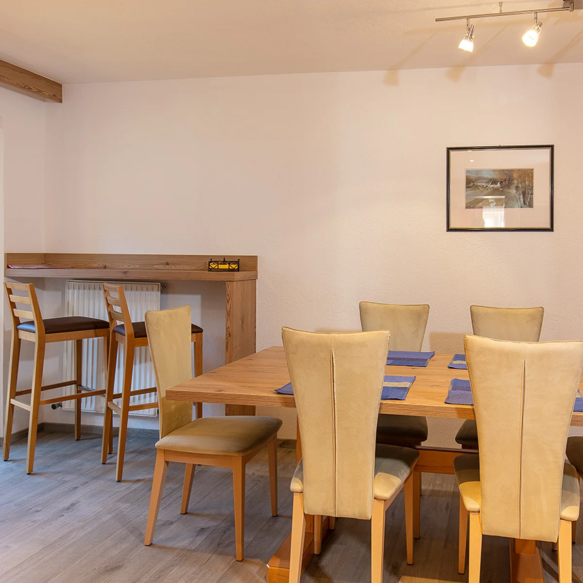 Unsere Ferienwohnung Typ A bietet auf ca. 60 m² Platz für bis zu 5 Personen. Zwei geräumige Doppelzimmer, ein zusätzliches Bett und eine voll ausgestattete Küche sorgen für ein komfortables Wohngefühl. Genießen Sie die Aussicht vom Balkon und starten Sie mit warmen Handtüchern und trockenen Wanderschuhen entspannt in den Tag.