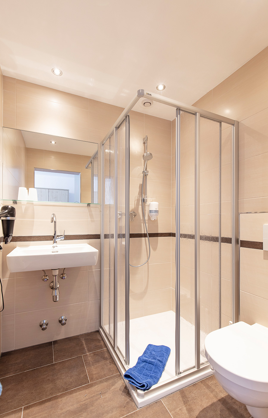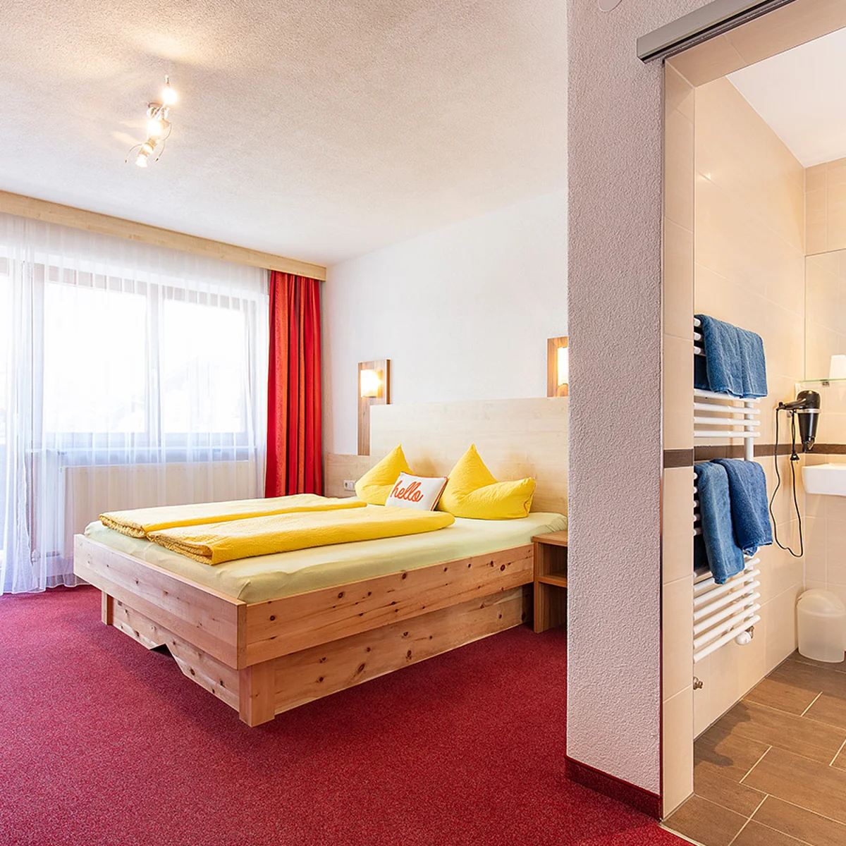Mit rund 72 m² Wohnfläche, drei Schlafzimmern und einer großzügigen Wohnküche ist die Ferienwohnung Typ B ideal für 6 bis 8 Personen. Zwei Schlafzimmer verfügen über ein eigenes Bad sowie Balkonzugang. Ob gemeinsames Kochen oder gemütliches Beisammensitzen – hier fühlen sich Familien und Gruppen sofort wie zu Hause.